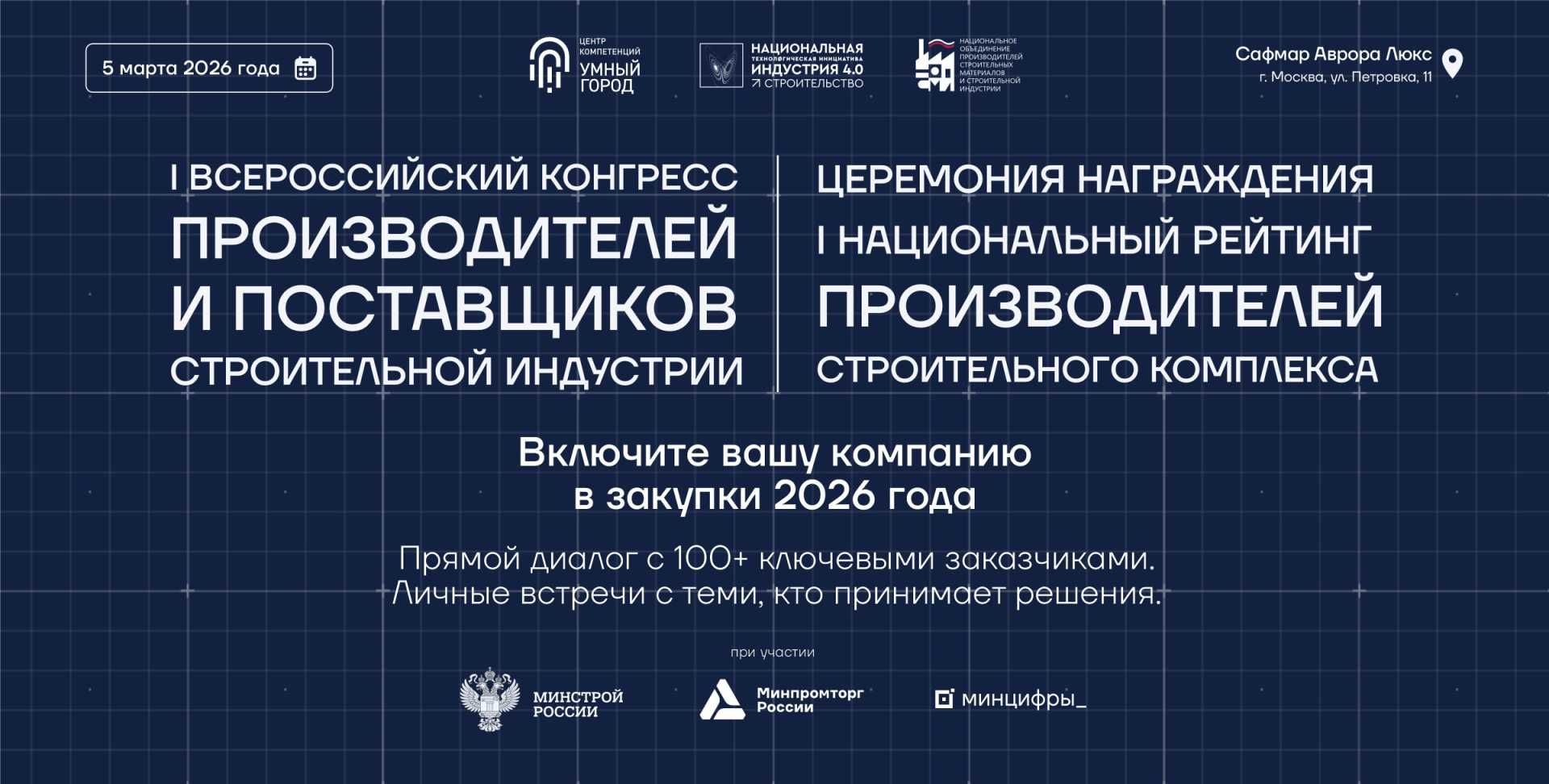 Уникальная площадка, где производители, поставщики и подрядчики представляют свои решения перед директорами ключевых игроков строительной индустрии.